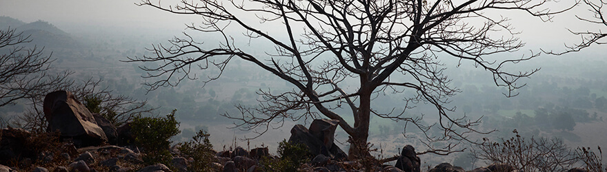 We got out, bewildered. Where were the temples? Where was the shrine? Swamiji’s stories had led me to expect lush trees with mischievous monkeys swinging through the branches and sadhus (holy men) with matted locks resting under them. In my imagination sixty-four temples were arrayed on the platform, each embodying a stream of the divine energy that nurtures and guides both the inner and outer worlds. But what I saw were a few scraggly trees and thorny bushes poking up from a sun-baked field around what appeared to be an empty platform. There weren’t even any steps leading up to it.